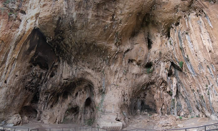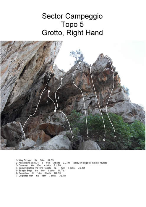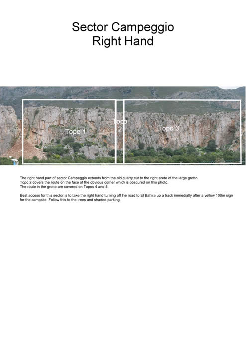 Right hand end of sector Campeggio with the cave entrance to the right.