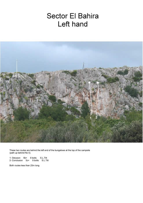 We strongly recommend you stay at El Bahira, the owner is happy to see climbers, it is clean and well tended, right by the cliffs and most important, they allow us to bolt their cliffs! While their website says they are not open until Easter they will happily open the bungalows by arrangement, these have one double room, two bunk beds and a pullout sofa/bed as well as shower, W.C. etc. T.V, cooking facilities and aircon. They also have large mobile homes which are ideal for two or so. Their website is http://www.elbahira.it and they speak and write English.