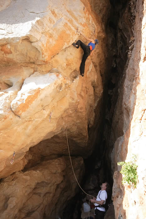 Easter came along and this year we assembled an even stronger team with Lukas Matasovsky from Austria, Barbra Hertner and top boulderer and guide author Hary Röker from Germany as well as the usual suspects. Daniele Arena and a strong Sicilian team also appeared and in usual style bolted like there was no tomorrow. The main focus of attention was the northern end of the cliff which has yielded a lot of great climbing in all grades. The new guide was in the shops two weeks before we left and we took great pleasure in making it out of date with a number of new sectors and over 100 new routes to add!